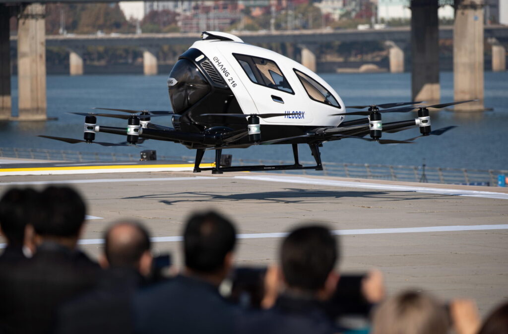 Il leader di questo avveniristico mercato è l’EHang EH216-S, un drone elettrico biposto con 16 eliche in grado di volare, decollare e atterrare in modo completamente autonomo.