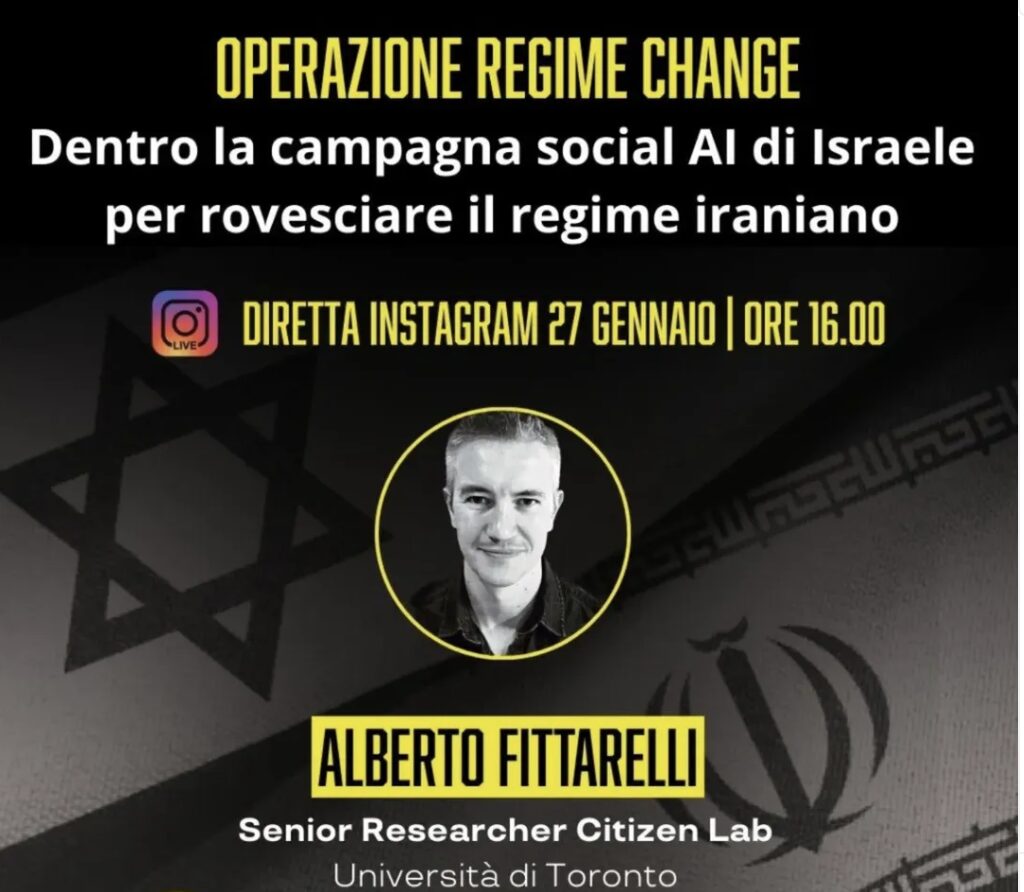 Ne parleremo con Alberto Fittarelli, esperto di cybersicurezza, disinformazione e open source intelligence e ricercatore senior presso il Citizen Lab dell’Università di Toronto. Il Citizen Lab è uno dei gruppi di ricerca più autorevoli al mondo quando si tratta di investigare la dimensione politica della tecnologia: studia l’uso delle piattaforme digitali, il cyberspionaggio, la repressione transnazionale, gli attacchi alla libertà d’espressione e l’impatto delle infrastrutture digitali sui diritti umani e sulla sicurezza globale.