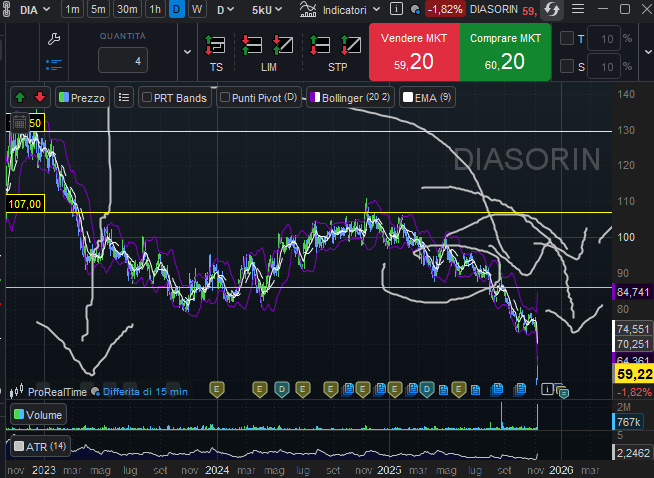 Tanevini analizza poi anche un altro tema. L’editorialista di LombardReport.com spiega di aver letto una news in settimana rispetto ad un crollo di Diasorin. “In realtà, vi farò vedere il disegno che avevo completato sul grafico di Diasorin a giugno e quello che poi è successo fino ai giorni nostri”. Per Tanevini “non sono le news che stravolgono il mercato, ma è la dimensione tecnica del titolo che fa cadere, sempre, le stesse cose”.