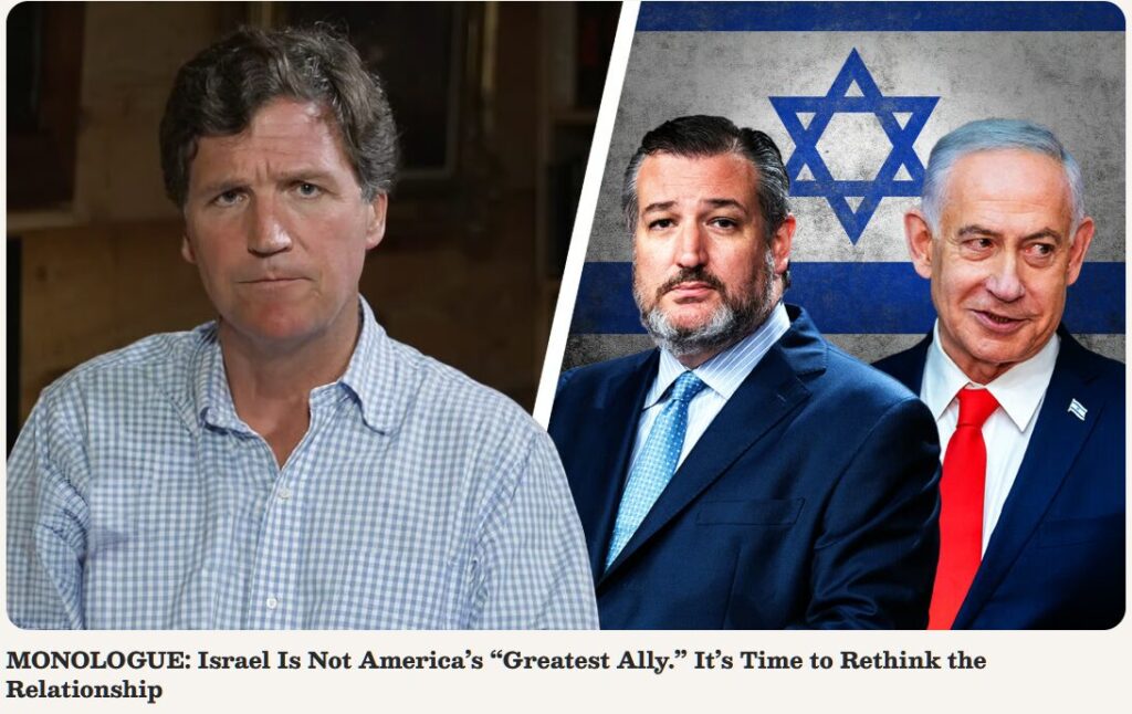 È attorno a questa domanda che ruota l’ultimo dei “Monologhi” del Tucker Carlson Network, col quale il famoso podcaster si prende probabilmente una rivincita sull’accusa più feroce dei sionisti nei suoi confronti, quella di essere a libro paga del piccolo ma ricchissimo Qatar. Accusa, ben inteso, scattata nel preciso istante in cui Carlson ha cominciato a prendere le distanze da Israele sui massacri di Gaza. Nel suo monologo Carlson invita a distinguere tra alleanze celebrate nella retorica politica e alleanze misurate in base alla dipendenza reale che esse generano. Secondo la sua impostazione, il criterio decisivo non è ciò che viene proclamato nei discorsi ufficiali, ma ciò che consente concretamente agli Stati Uniti di agire sul piano militare e diplomatico.