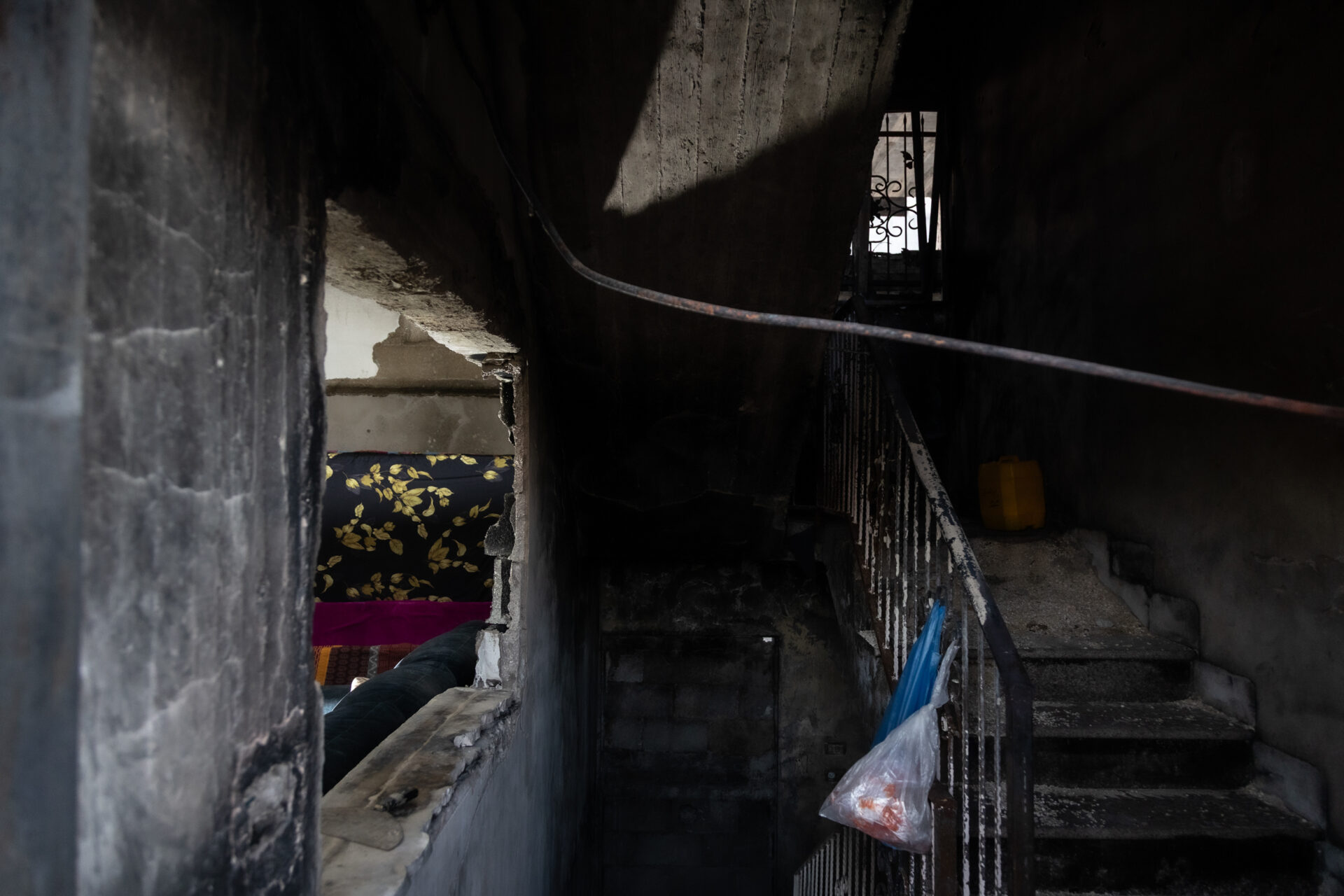 “Hanno preso l’olio d’oliva dalla cucina e hanno iniziato a farlo gocciolare sul pavimento della casa, hanno preso i vestiti dall’armadio e hanno iniziato a metterli in giro, poi hanno dato fuoco alla casa. Hanno bruciato diverse case contemporaneamente, e quando sono arrivati i pompieri, hanno impedito loro di fermare l’incendio”, racconta Widad, profuga dal 1948 nel campo di Nur Shams, a Tulkarem.