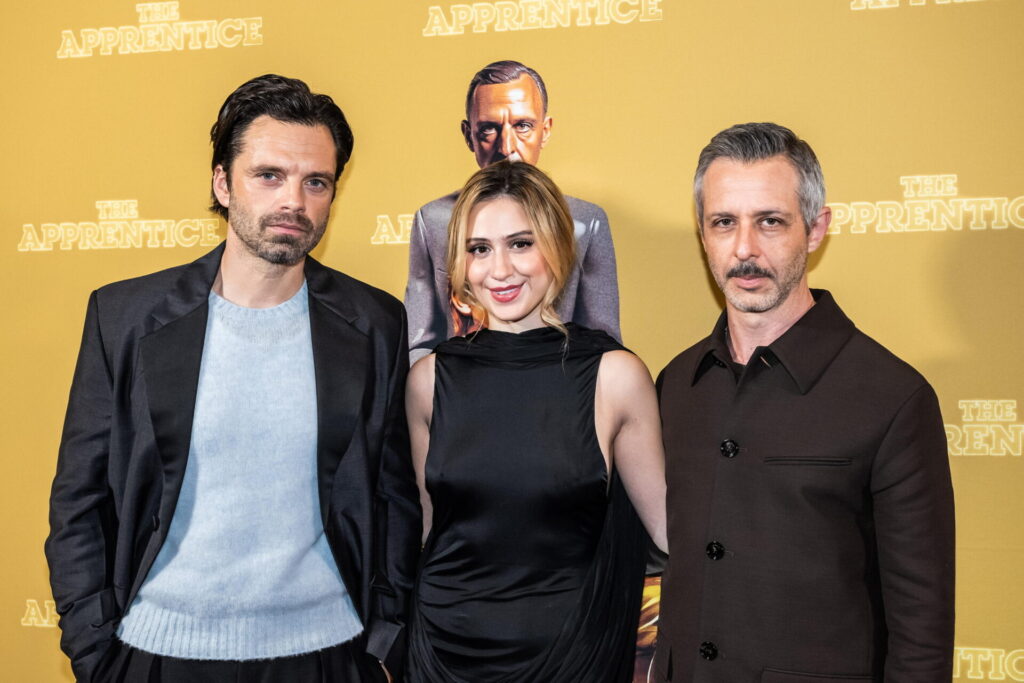 La premier di The Apprentice – Alle origini di Trump, con il cast: Sebastian Stan (Donald Trump), Maria Bakalova (Ivana Trump) e Jeremy Strong (Roy Cohn)